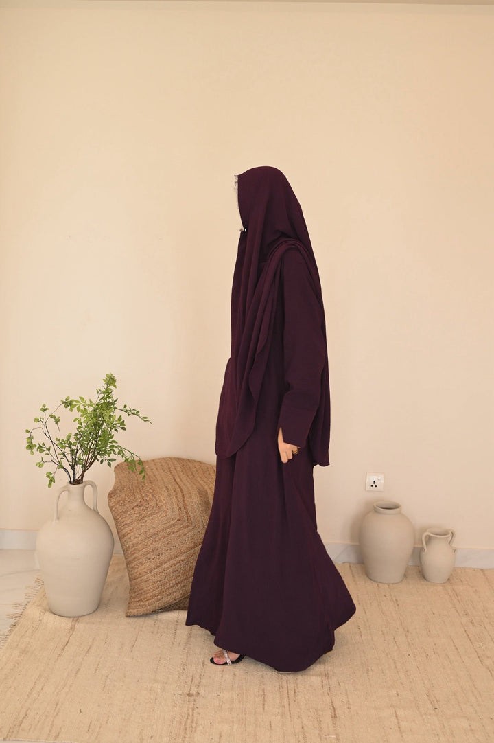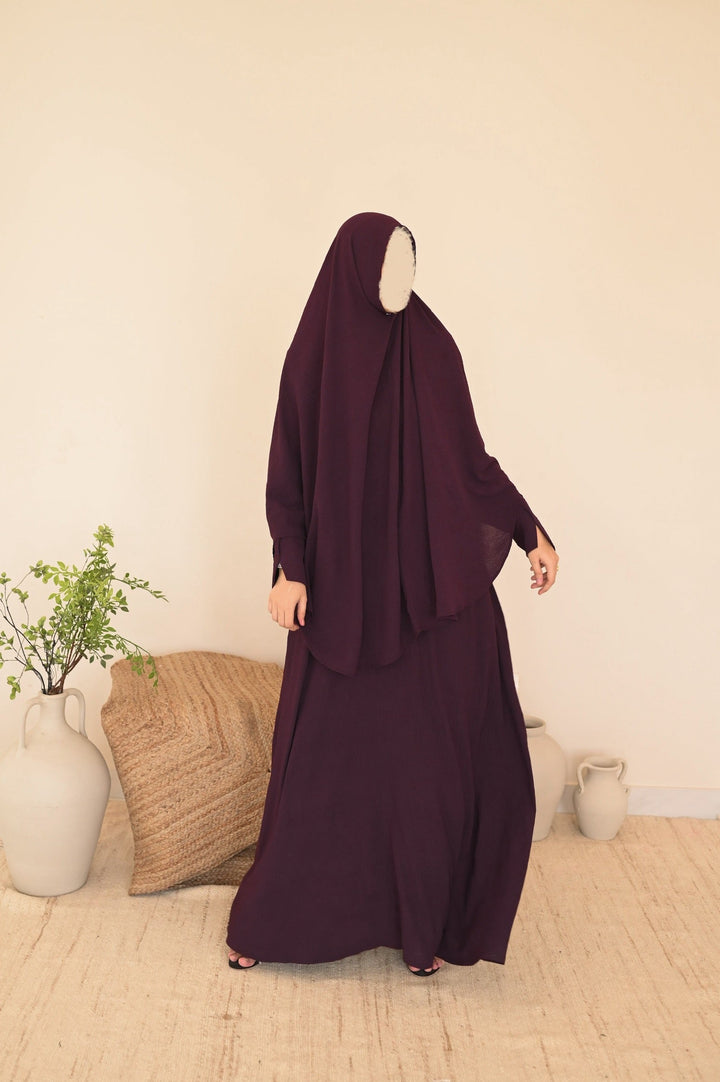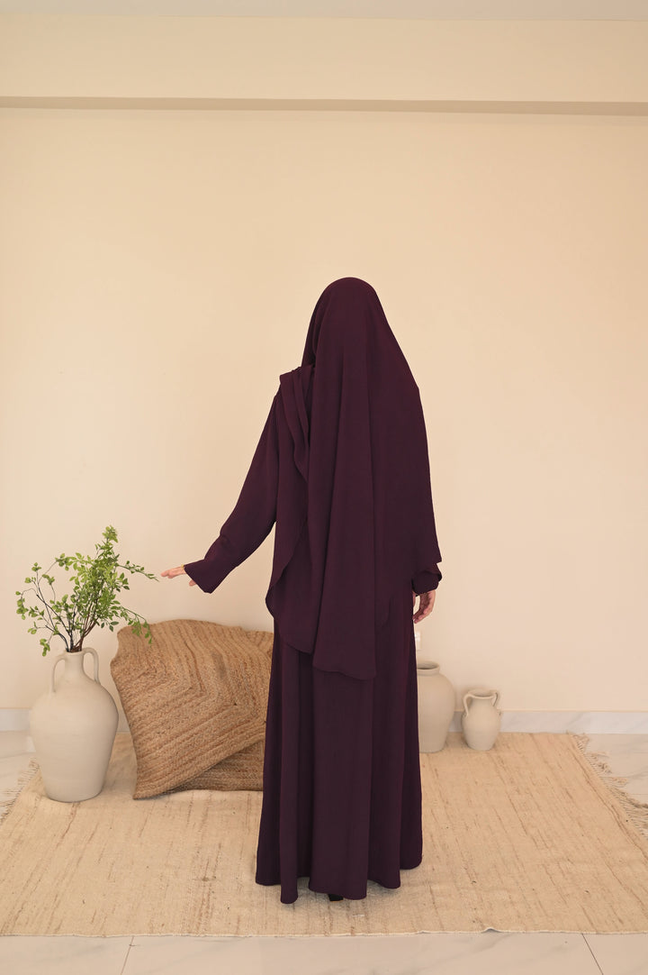 We have crafted the most effortless ihram and taraweeh solution: The complete Abaya and Khimar set.