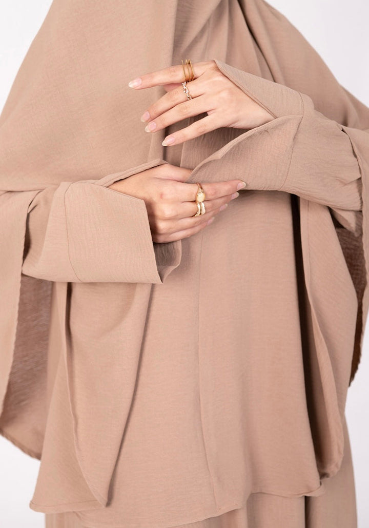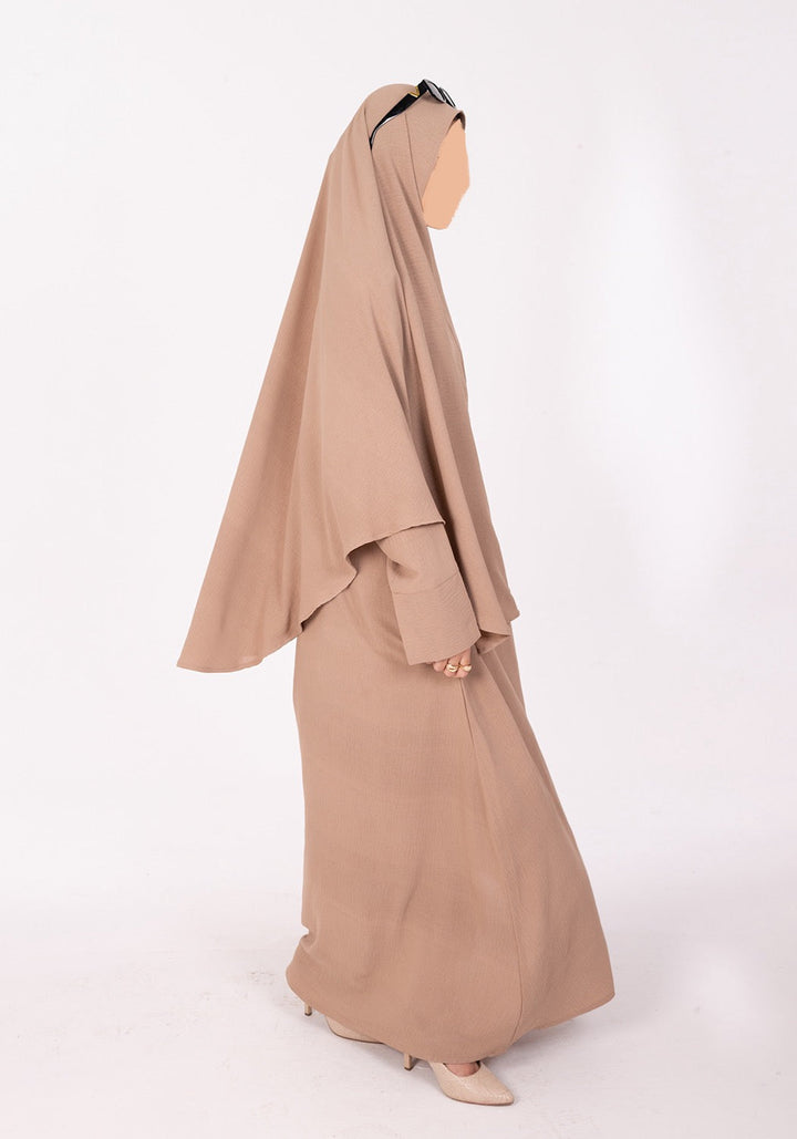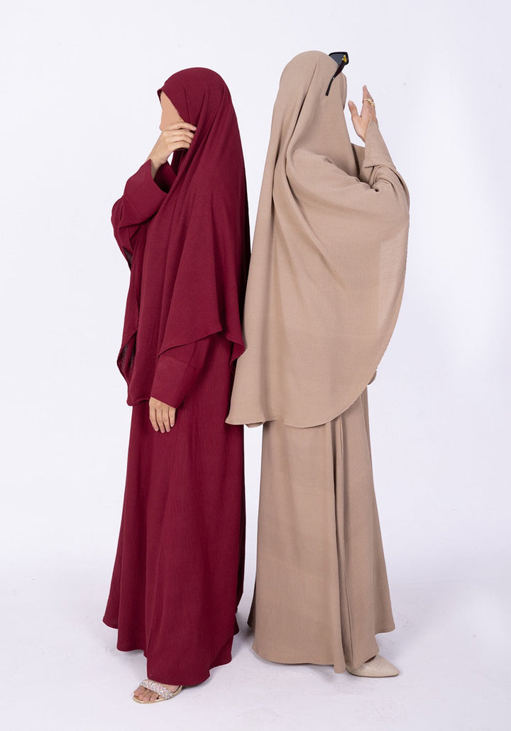 We have crafted the most effortless ihram and taraweeh solution: The complete Abaya and Khimar set.