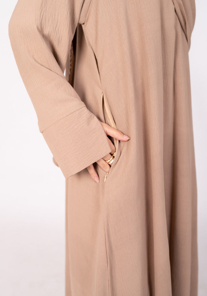 Fit type: Regular slight A line abaya cut.  With Free size Khimaar.